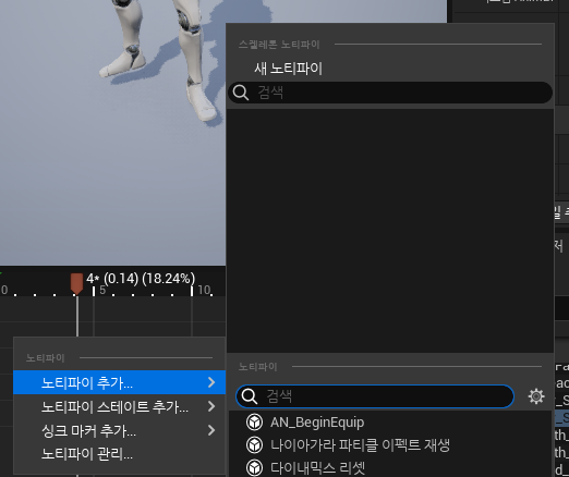 [창] - [애니메이션 노티파이] 를 클릭하여 추가해주면 된다.