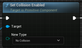 [BeginPlay], [Set Collision Enabled], [Capsule]을 사용하여, 시작시 충돌을 끈다.