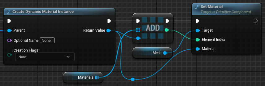 Create Dynamic Material Instance [Materials_ Dynamic_ Instance_배열 형식] 으로 제작한다.