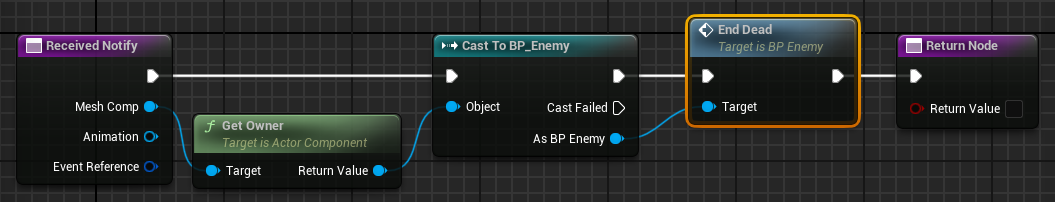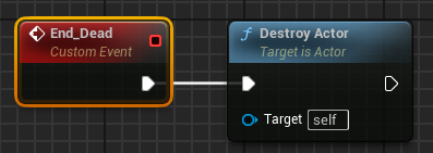 피격시 데미지를 입은 상태에서 [MaxHealth] 값이 0이 되었을 때 [Custom Event]로 Dead 처리해주는 방법이다.