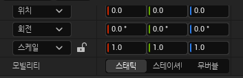 스케일은 액터의 월드 상의 오브젝트 크기를 설정한다.