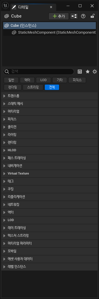 디테일 창에는 다양한 기능들이 즐비해 있으나,