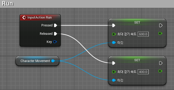 추가된 BlendSpace 드래그해서 이벤트 그래프로 갖고오기.