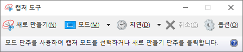 캡처 도구를 실행한 후, ‘모드’ 또는 ‘새로 만들기’를 클릭하면 아래와 같은 네 가지 캡처 방식을 선택할 수 있습니다:
